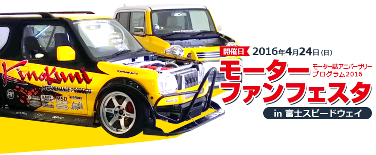 2016年4月24日(日)に富士スピードウェイで開催される、モーターファンフェスタ2016にキノクニジムニーを展示いたします!